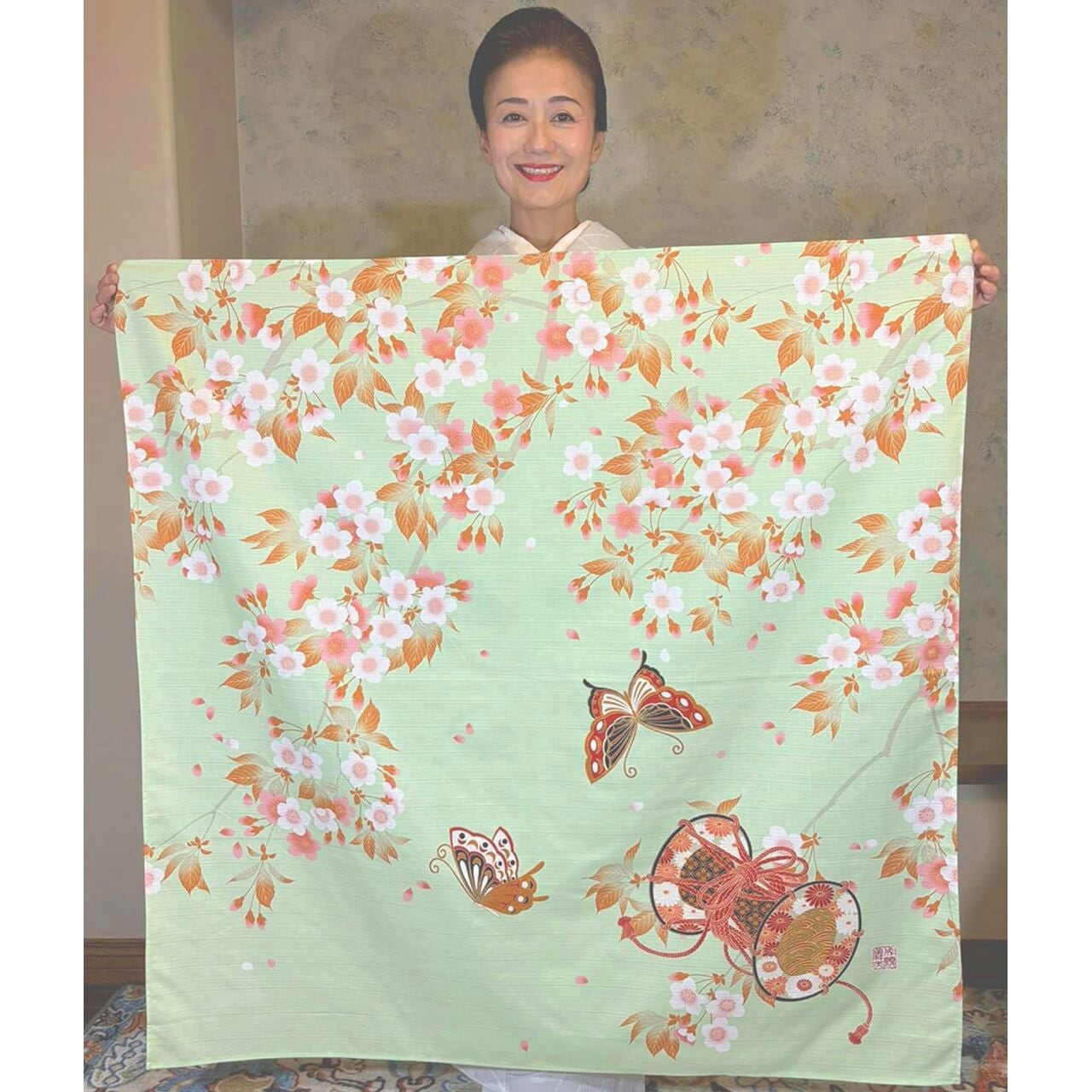 オリジナルデザイン風呂敷・王朝雅シリーズ・「胡蝶」薄緑